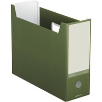 コクヨの〈NEOS〉シリーズ!両側面の切り込みで、縦置き・横置きの2WAYで使える!見出し面は、色分類とタイトル分類のどちらもしやすい機能的なデザインです。