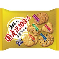 粒の大きさとミネラル分の割合が違う4種類の塩と黒糖をブレンドした、つぶつぶ食感が美味しい風味豊かなうす焼せんべい。2枚入りが15袋。