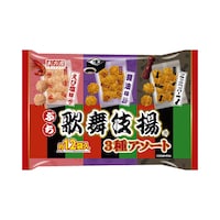 ぷち歌舞伎揚3種類のおいしさ!醤油味、えび塩味、ブラックペッパー味をアソート。