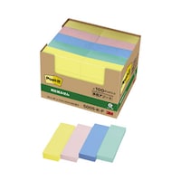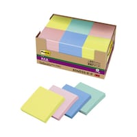 大容量の通常粘着のポストイットふせんです。オフィスでの買い置きにおすすめ。詳しい伝言、情報整理などに便利な定番サイズ。エコマーク認定商品。古紙パルプ配合率100%の再生紙を使用しています。