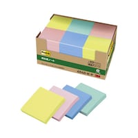 大容量の通常粘着のポストイットふせんです。オフィスでの買い置きにおすすめ。伝言メモ、見出しなどに便利な定番サイズ。エコマーク認定商品。古紙パルプ配合率100%の再生紙を使用しています。