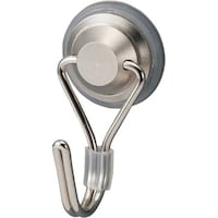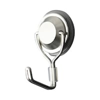 取付面のキズを防ぐラバー付きの金属製マグネットフック。フック部分はスイング&360度回転式で天井にも取り付け可能。