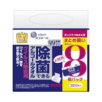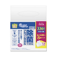 片手で使いやすいボックスタイプのつめかえ用です。アルコールを配合したシートで、身のまわり品を拭くだけで簡単に菌を除去します。速乾性が高く、拭き取り跡が残りにくくなっています。