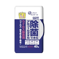 片手で使いやすいボックスタイプです。アルコールを配合したシートで、身のまわり品を拭くだけで簡単に菌を除去します。速乾性が高く、拭き取り跡が残りにくくなっています。
