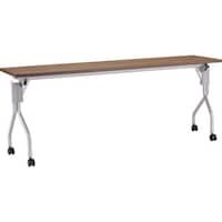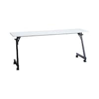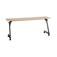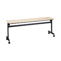 天板跳ね上げ式だから、テーブルを使わない時はスタッキングしてコンパクトに収納できます。天板はメラミン化粧。キャスター付きで移動も簡単です。