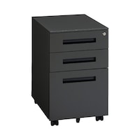 ダークグレーカラーのデスクワゴン。お求めやすい価格と合わせやすいすっきりデザインが魅力。オールロックキーでフルオープン引出のオフィス仕様。