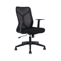 ベーシックなコンパクトチェア。ガス式上下昇降・背もたれ奥行調整機構付き。