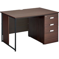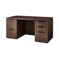 FMSマネ−ジメントシリーズの両袖机です。クイーンズランドウォールナット調のメラミンとブラックのコンビネーションで高級感をリーズナブルに実現。