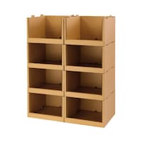 スチールラックはもっと使える!オフィスやバックヤードの整理に最適な、ダンボール製の組み立て式システムトレーです。同一サイズ・異なるサイズもスタッキングできるから、使い方の幅が広がります。