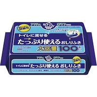 トイレに流せるノンアルコールおしりふき。素肌と同じ弱酸性。アロエエキス配合。たっぷり使える120枚入り。